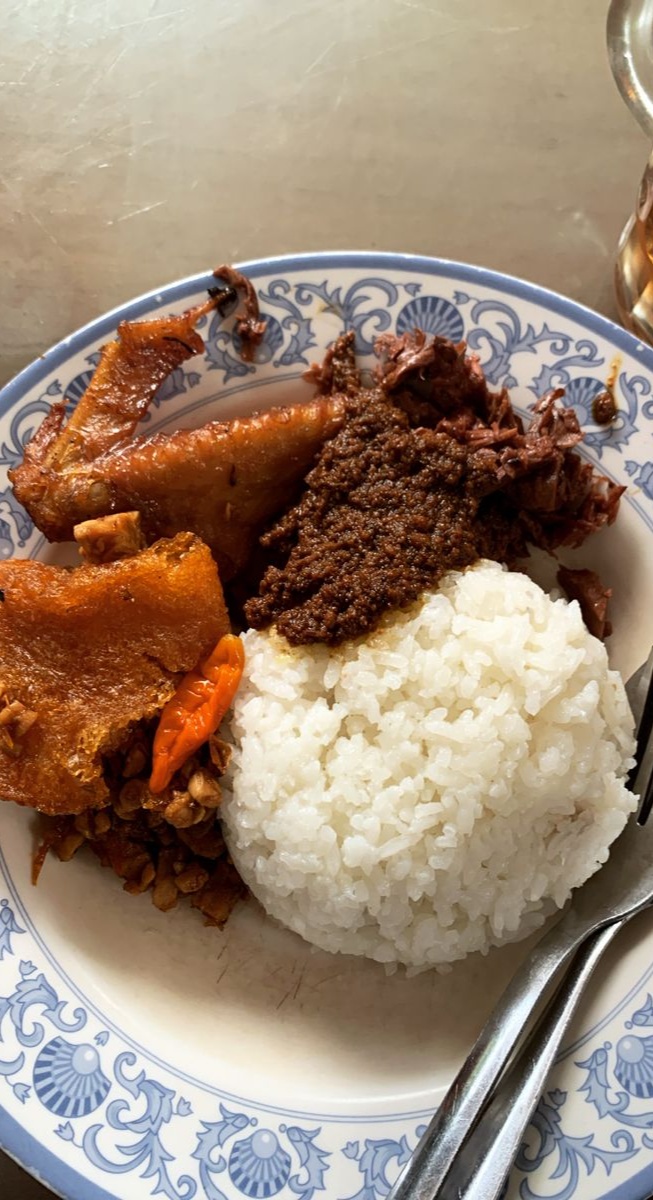 Gudeg biasanya disajikan dengan berbagai lauk seperti ayam kampung suwir atau utuh, telur bacem, dan sambal krecek pedas yang menggugah selera. Kombinasi manis gurih dari gudeg, pedasnya krecek, dan nikmatnya ayam kampung, dijamin bikin ketagihan.